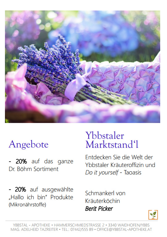 Wir behalten uns vor, Veranstaltungen bei denen die Mindestteilnehmerzahl nicht erreicht wird, abzusagen. Bei Rückfragen steht Ihnen das Team der Ybbstal Apotheke gerne zur Verfügung!